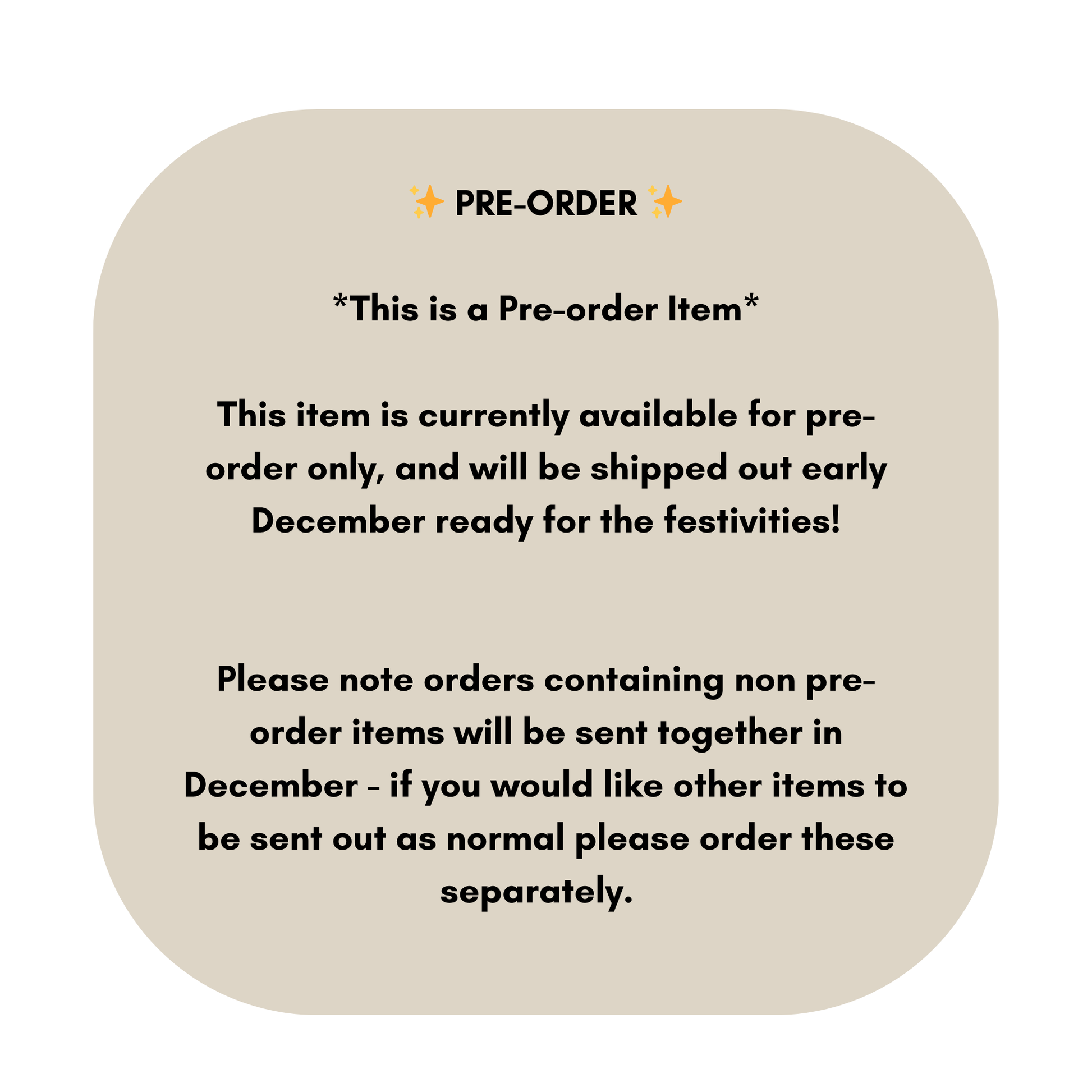 *Orders containing non pre-order items will be sent together in December - if you would like other items to be sent out as normal please order these separately.*